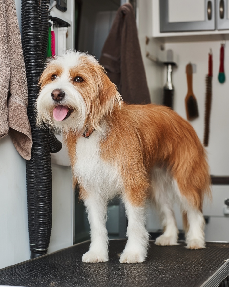 Special coat grooming is tailored for curly, double-coated, or high-maintenance breeds. It includes everything in a full groom plus extra brushing and coat care.