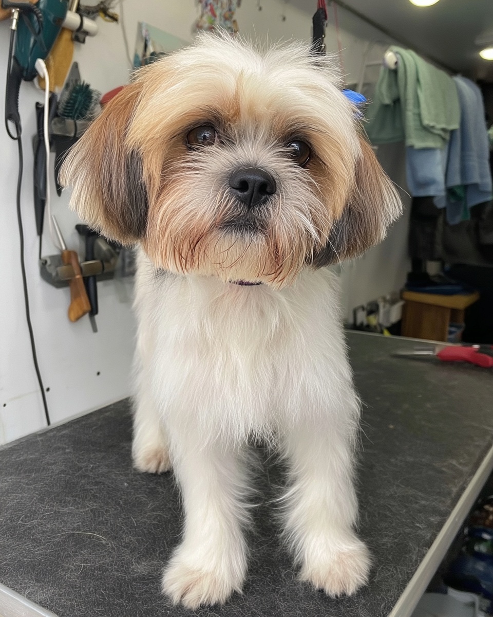 Full groom service tailored for curly, double-coated, or high-maintenance breeds. Includes everything in the full groom with added brushing and coat care.
